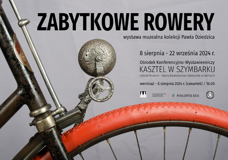 Zapraszamy serdecznie na wernisaż muzealnej wystawy ZABYTKOWE ROWERY dnia 8 sierpnia 2024 r. o godzinie 18.00 / oficyna dworska przy Kasztelu w Szymbarku.