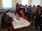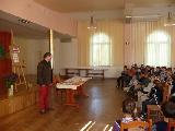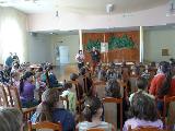 Twórca niezrównanej serii o bliźniakach Kubie i Bubie i równie dobrze znanych przygód Detektywa Pozytywki już od samego początku podbił serca młodych czytelników. Było więc sto lat - z okazji niedawnych urodzin autora, próby polizania swojego! łokcia, było rozwiązywanie zagadek z detektywem Pozytywką i odgadywanie znaczeń powiedzeń z bliźniakami Kubą i Bubą. Dzieci dowiedziały się jak to jest być pisarzem, który jednocześnie jest i na wakacjach i w pracy. Na wakacjach, bo nie musi podpisywać listy obecności i codziennie chodzić do fabryki. W pracy - bo nawet jak wyjeżdża w góry czy nad morze, bierze ze sobą komputer i pisze a pisząc wciela się w bohatera swojej książki, więc niejako żyje pod innymi postaciami. Była też okazja do poznania innych książek autora -w tym nowości, której jeszcze nie ma w księgarniach. Padło sporo pytań, dotyczących nie tylko zawodu pisarza, ale i jego prywatnego życia. Na wszystkie pan Grzegorz odpowiedział, a na koniec spotkania rozdał mnóstwo autografów i pozował do pamiątkowego zdjęcia.