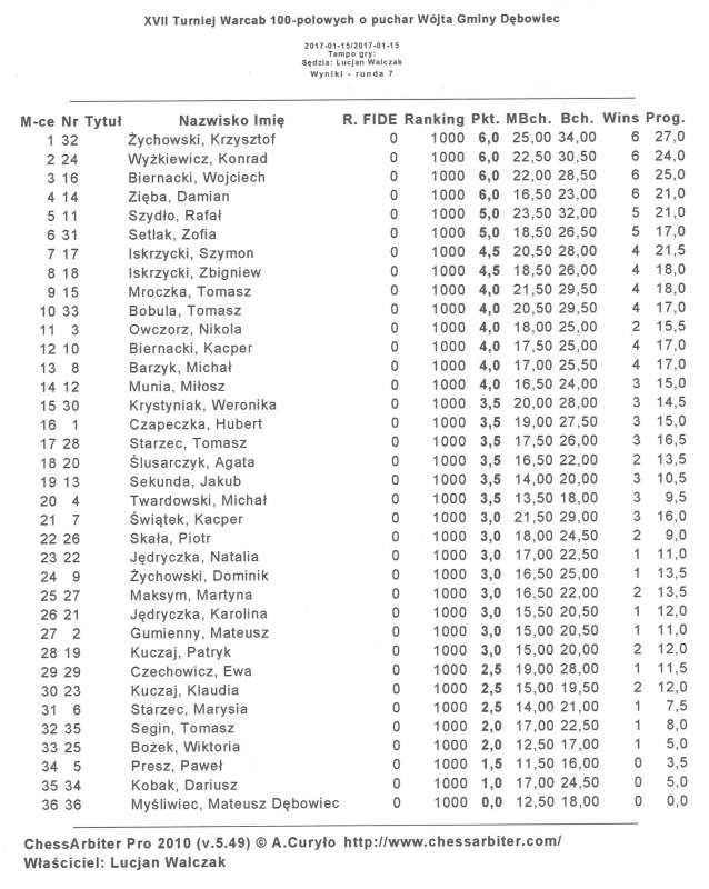 Nad prawidłowym przebiegiem rozgrywek czuwał sędzia warcabowy Lucjan Walczak oraz Józef Zdebik.